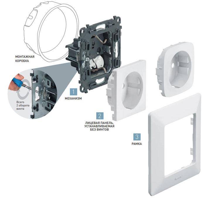 - Conçu pour un câblage ouvert. Ils sont installés sur la surface du mur à l'aide d'une boîte à prises réalisée sous la forme d'une plaque.