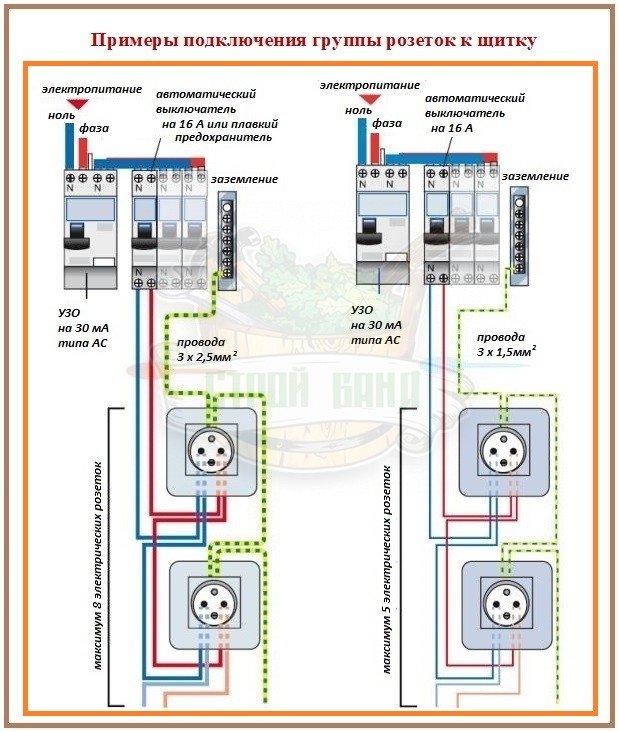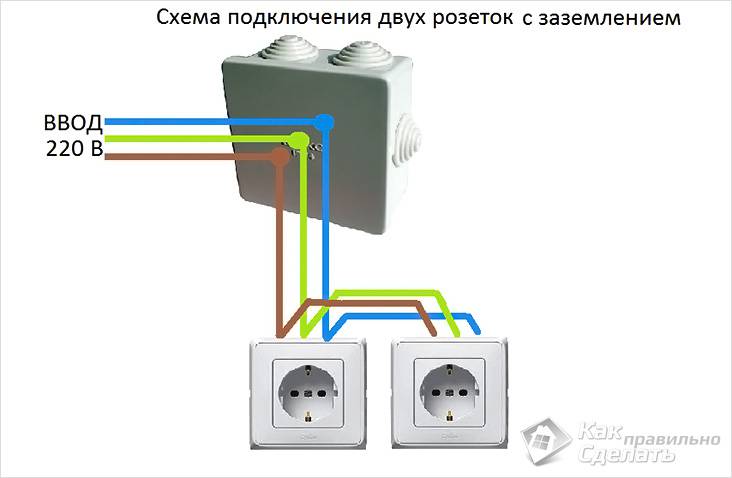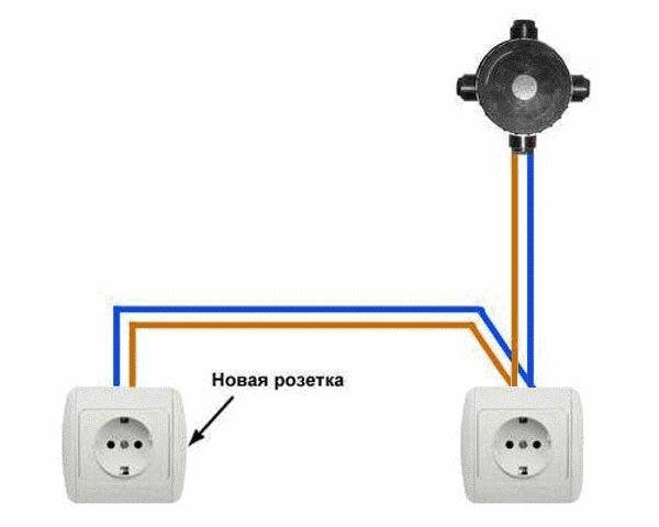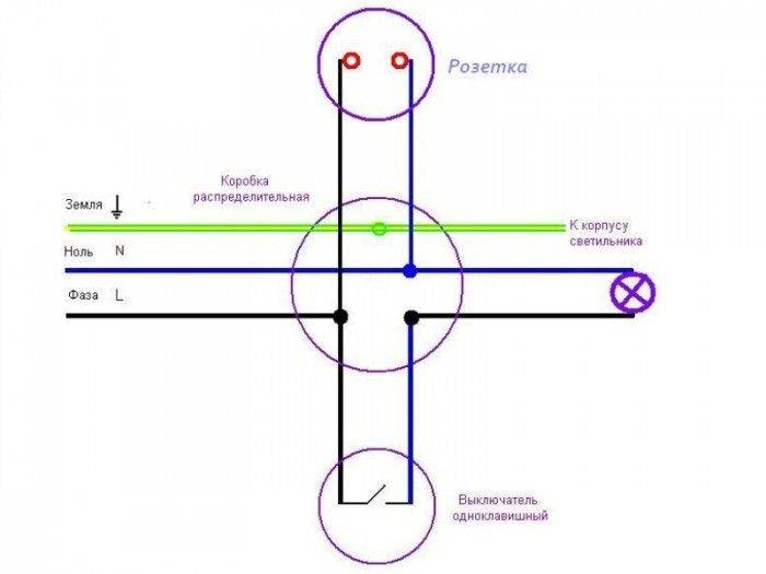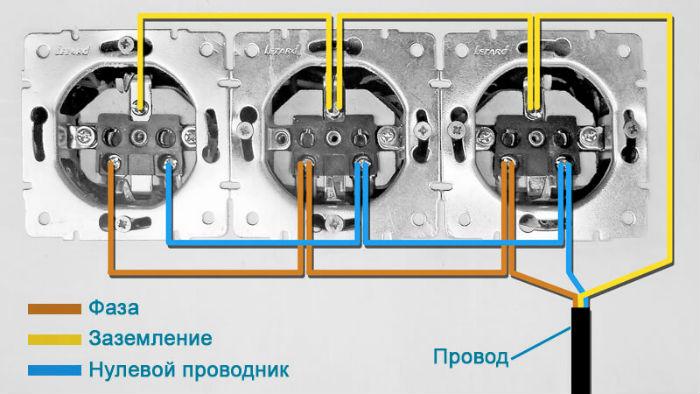 Une caractéristique distinctive d'un tel schéma est que chaque élément structurel (point électrique) est alimenté à partir du précédent, et cela, à son tour, à partir de son prédécesseur. En d'autres termes, les prises sont connectées comme des ampoules sur une guirlande - seule la première est connectée au réseau, et les autres sont commutées avec ses contacts en série: phase - avec phase, zéro - avec zéro. Les cavaliers (boucles) agissent comme des maillons de connexion dans cette chaîne.