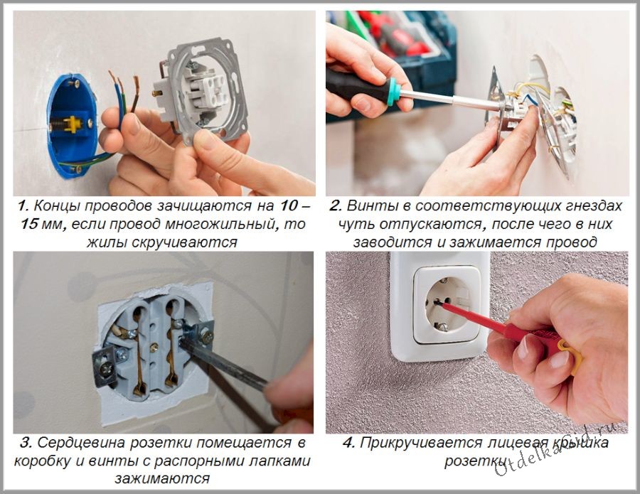 - Retirez le couvercle de la prise. Desserrez ou dévissez les vis qui serreront les fils. Insérez les extrémités du fil (après les avoir dénudées) et serrez-les fermement avec des vis.