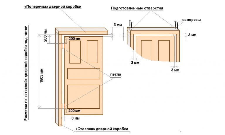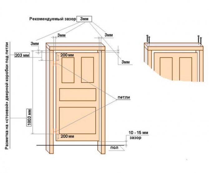 - À l'intérieur du rack, mesurez la longueur requise (elle se compose de l'espace inférieur, de la hauteur du vantail de la porte et de l'espace supérieur).L'écart inférieur est généralement considéré comme étant d'environ 1 cm, celui du haut - pas plus de 0,4 cm Préparez le deuxième rack de la même manière.