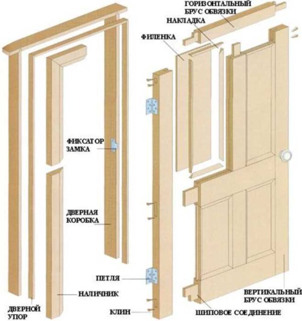 Une serrure et des charnières sont fixées au modèle, puis le vantail de la porte est assemblé, les autres éléments nécessaires sont montés.