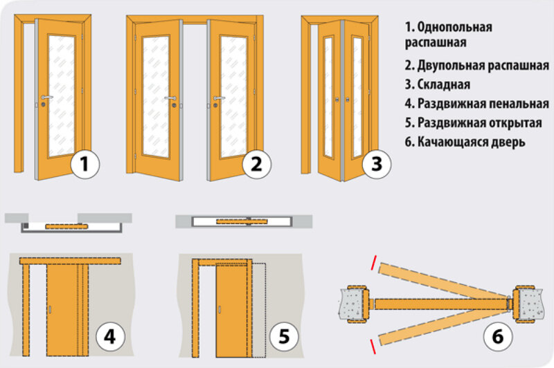 - Nous approuvons la conception générale - une porte battante (voir Installation de portes intérieures battantes. Comment combiner beauté et fonctionnalité), dans quelle direction ouvrir, ou une porte coulissante.