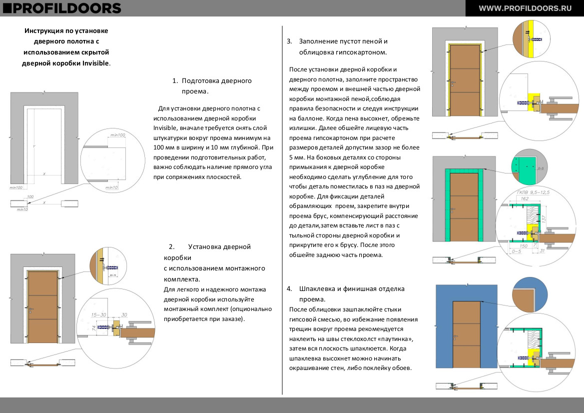 Après avoir terminé les travaux préparatoires et préparé tous les outils nécessaires, vous pouvez commencer à installer les portes intérieures. Parmi les outils, vous aurez besoin d'un marteau, d'un niveau à crémaillère court et d'un pied de biche. De plus, il est nécessaire d'acheter un cylindre avec de la mousse de polyuréthane basse pression pendant la polymérisation. Un exemple est la mousse Macroflex 65. Des cales en bois doivent également être préparées. À ce jour, il existe une technologie éprouvée sur la façon d'installer correctement les portes intérieures. Vous pouvez voir le processus d'installation dans la vidéo.