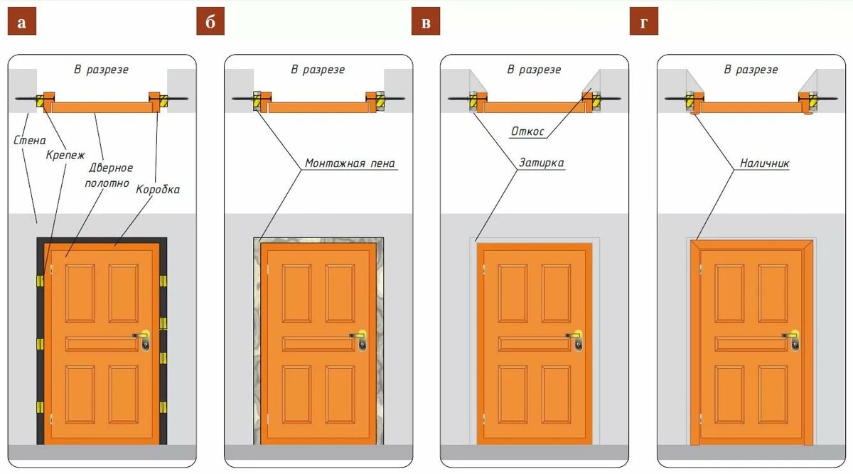 Avant le travail technologique proprement dit, comme on peut le voir sur la photo de l'installation de la porte, la surface de travail est préparée. Il est nécessaire d'enlever l'ancienne structure de la porte, si elle est présente.