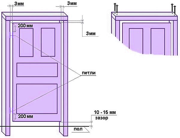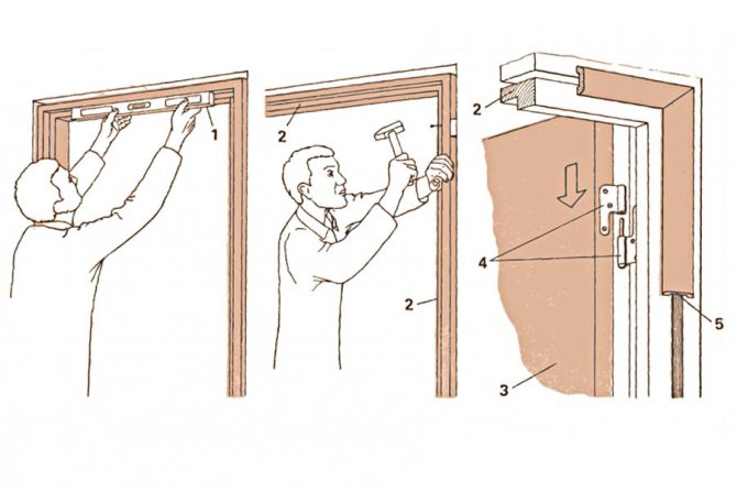 Au cours de ce processus, il est important de porter une attention particulière au côté sur lequel la structure est installée. Lors de l'installation, il est conseillé d'être là où la porte s'ouvrira. Maintenant, vous devez définir la structure au centre de l'ouverture