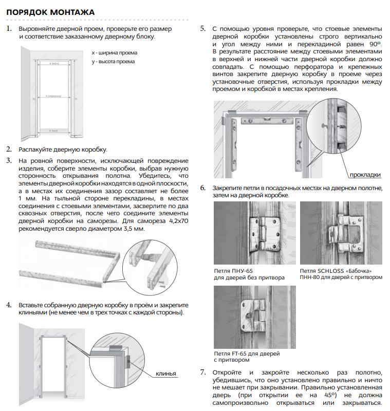 Avant de commencer à installer des portes, il convient de vérifier la présence de tous ses composants