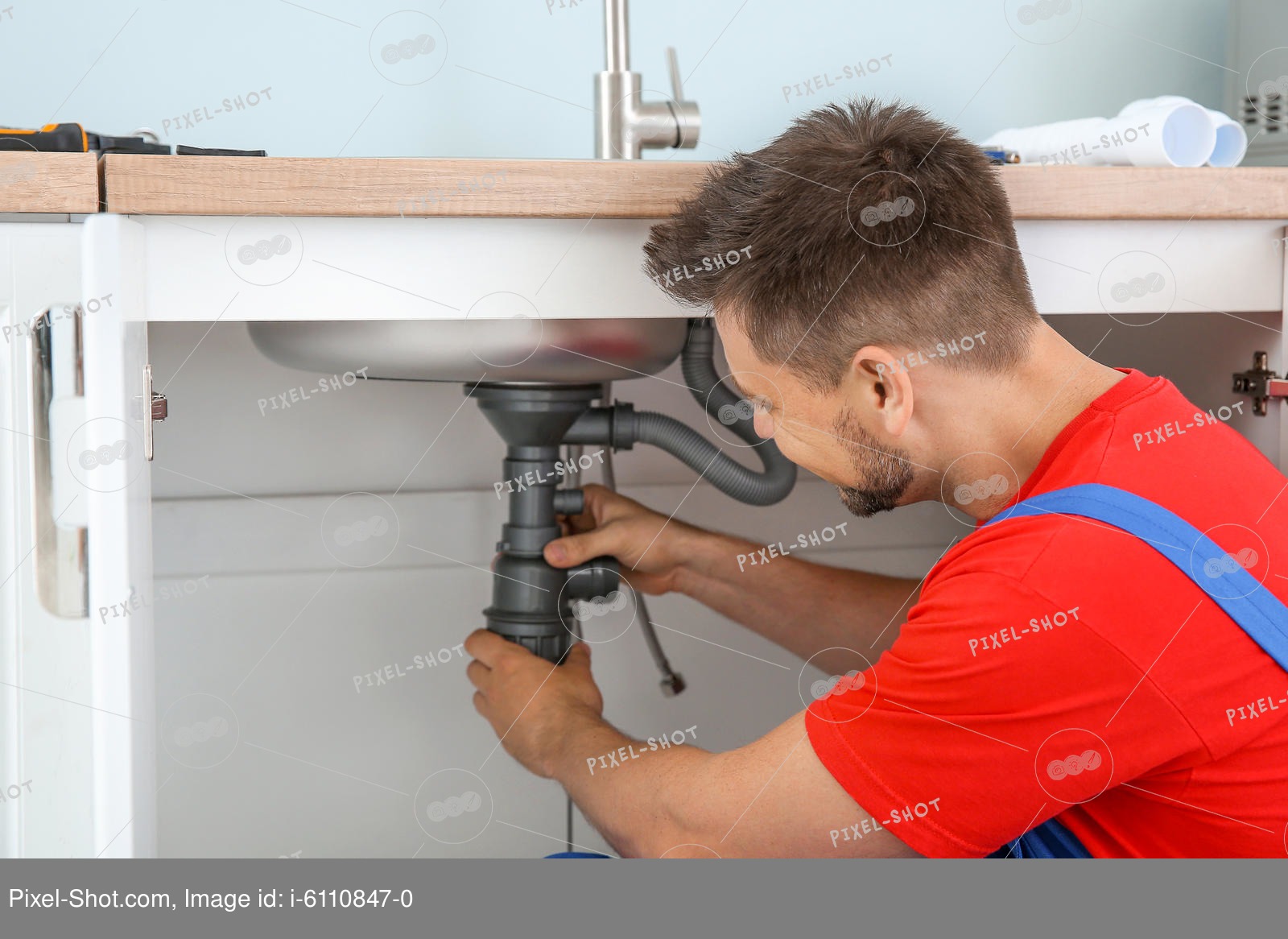 - L'installation des portes dans les armoires de cuisine est la dernière étape, qui sera le point final des travaux de plomberie.