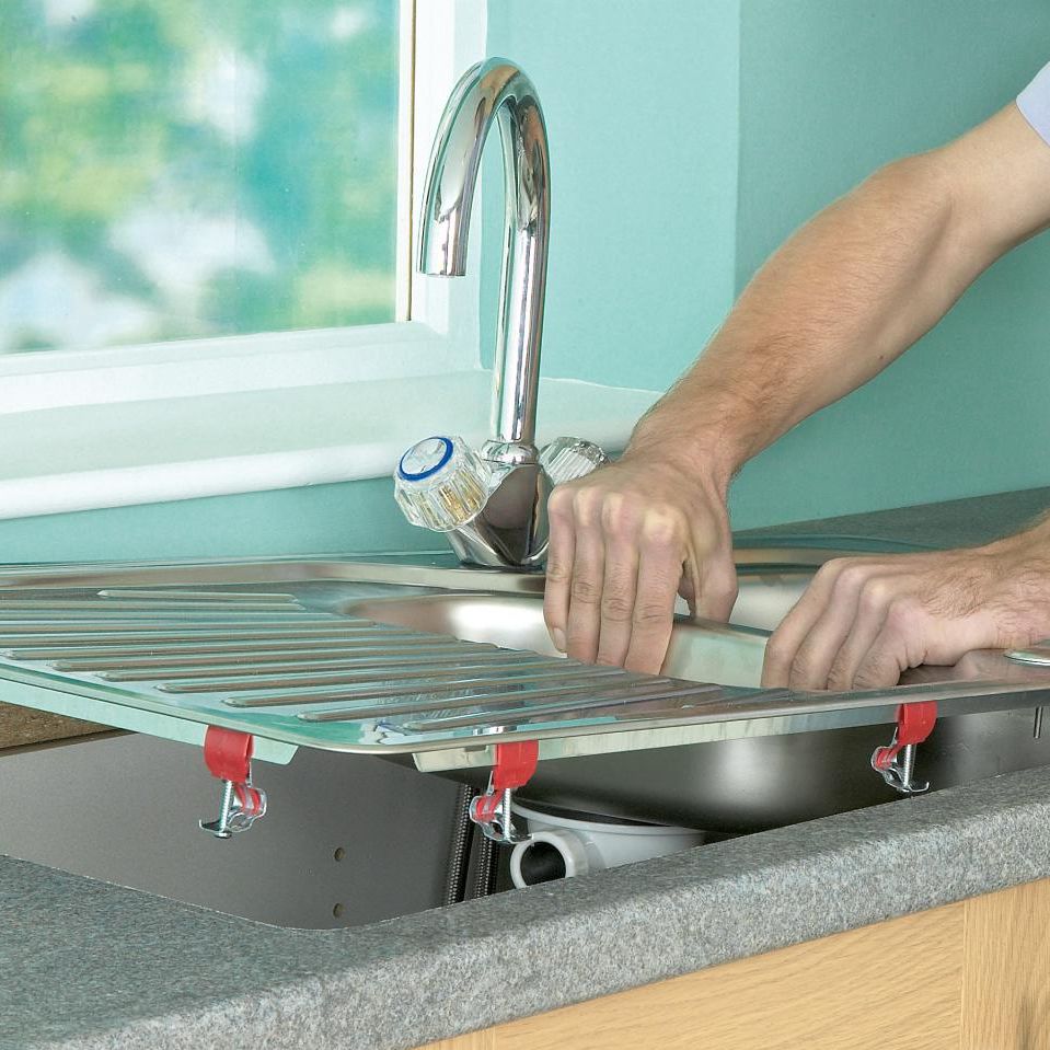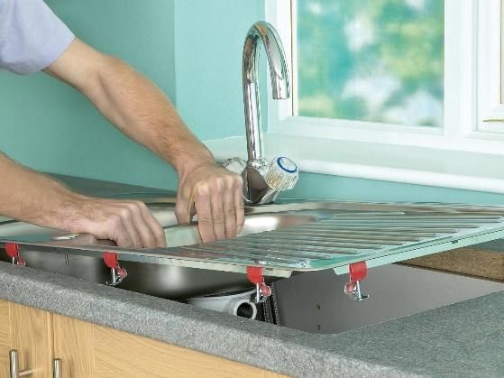 Pour installer l'évier dans le plan de travail et le fixer solidement et solidement, vous devez passer par deux étapes.