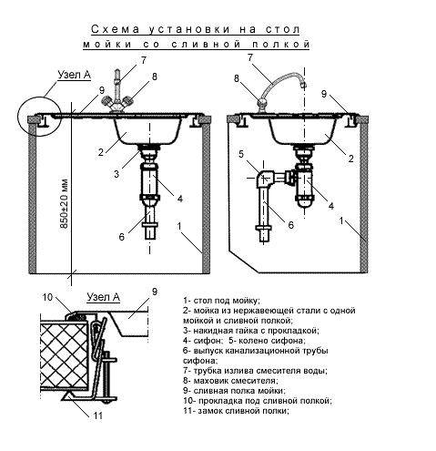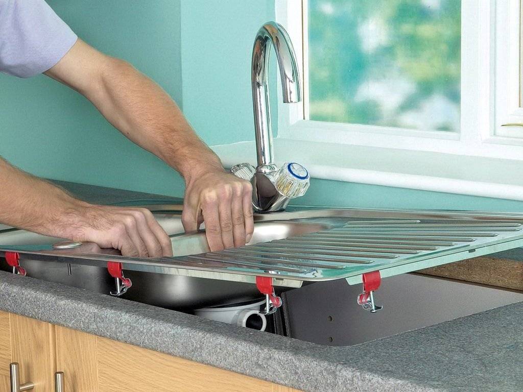La fixation de l'évier à mortaise s'effectue selon le même principe que la fixation de la lettre de voiture. Au stade de la fixation, il vaut mieux abandonner le tournevis et travailler avec des tournevis. La dernière étape de l'installation est l'assemblage du siphon et le raccordement de l'évier aux communications, après quoi il est vérifié.