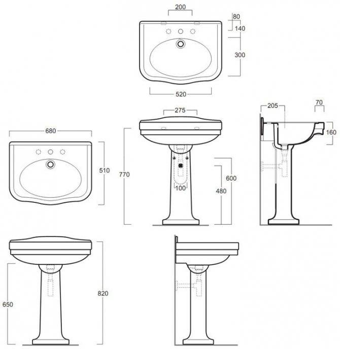 Avant d'installer un évier tulipe, il est important d'étudier attentivement le schéma d'un modèle particulier, qui peut avoir différentes tailles et caractéristiques de conception.