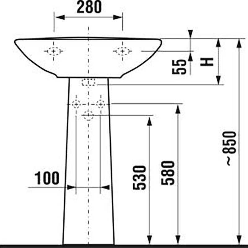 Supporte la hauteur de la colonne. Sa longueur doit être telle qu'une personne n'ait pas à se pencher trop pour se laver. La taille typique est de 70 à 80 cm; s'il ne rentre pas, il vaut mieux chercher un autre modèle ou s'arrêter à une coquille de tulipe avec un demi-socle. Dans un autre article, nous avons examiné de plus près les normes de hauteur d'évier.