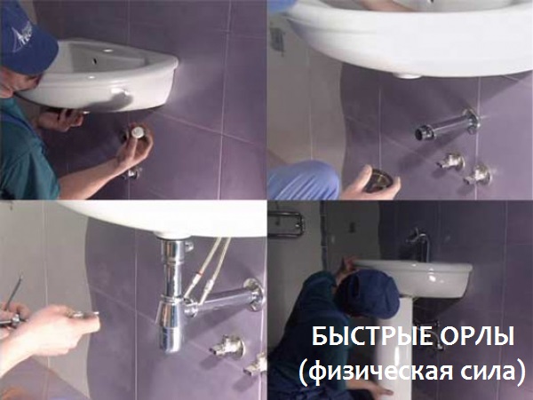 De plus, lors du serrage des écrous, vous devez les serrer tour à tour - un peu d'abord, puis le second, puis encore un peu d'abord, puis encore un peu de seconde, et ainsi de suite. La même méthode de serrage des écrous est utilisée lors de l'installation de la cuvette des toilettes - elle est fixée au sol exactement de la même manière en serrant les écrous un par un. Cela vous permet de répartir plus uniformément les forces résultantes dans le corps d'un appareil de plomberie fragile et d'éviter les fissures.