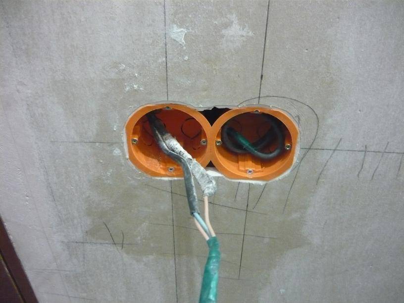 - Même au stade du montage de la structure du GKL, à l'endroit de l'installation prévue de la prise, cela n'interfère pas avec le câblage à faire sortir avec une marge de 20-30 cm.
