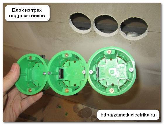 Si vous devez installer un bloc de prises, vous devez consulter leurs instructions, ainsi que les paramètres des prises et déterminer l'entraxe. Elle est généralement de 71 mm. Pour que tout soit uniforme, idéalement, immédiatement après avoir retiré la couronne pour retirer le foret central, il est nécessaire de faire des marquages à partir d'un petit trou le long d'une ligne horizontale par incréments de 71 mm.Les points résultants seront utilisés pour centrer les exercices ultérieurs à l'avenir.