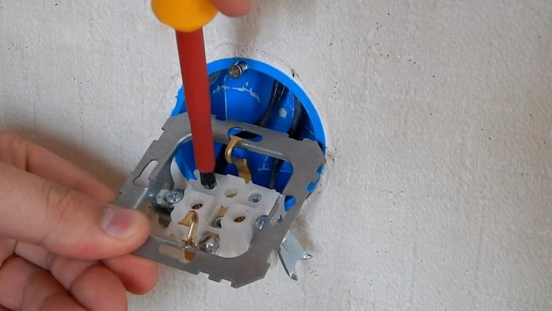 Si le câblage n'est pas connecté à l'alimentation, vous pouvez procéder directement à l'installation de l'élément principal de la prise. Sinon, il est préférable de couper l'électricité pour un fonctionnement en toute sécurité. Vous devez vérifier la présence de tension dans le réseau avec un tournevis indicateur.