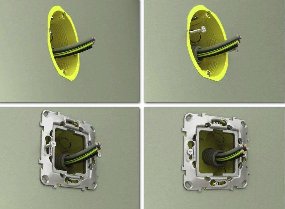 Les manières de fixer la prise sur les murs avec une finition en plaques de plâtre sont sélectionnées en fonction de la pose du câblage. Des différences significatives ont des méthodes avec une ligne électrique cachée posée ou ouverte, directement sur le mur.