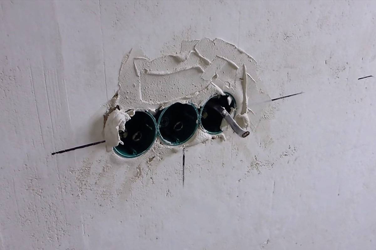 La façon dont le marquage de deux ou plusieurs boîtiers de prises est effectué a été décrite ci-dessus. La réalisation des trous se fait de la même manière que pour une seule boîte. La seule différence est la nécessité de combiner les trous les uns avec les autres. Cela peut être fait avec un ciseau ou une meuleuse.