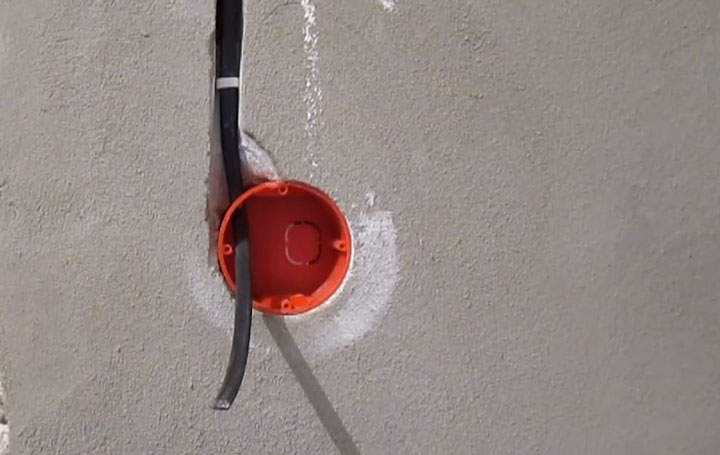 Si tout s'est bien passé, il est maintenant nécessaire de faire un passage pour poser le fil depuis la partie supérieure ou inférieure du trou (en fonction de l'emplacement du câblage électrique dans la pièce).
