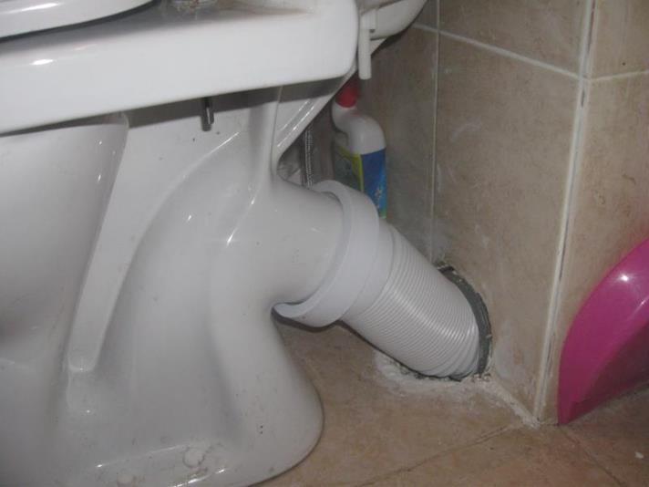 • non-respect de la règle de différence de hauteur - lors du déplacement des toilettes, l'angle entre celles-ci et le système d'égout doit être de 15 o ou 3 à 5% de la distance de déplacement. Par exemple, lors du transfert d'une cuvette de toilettes de 2 m, elle doit être élevée à une hauteur de 6 à 10 cm;