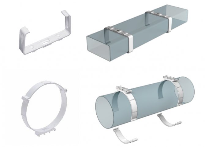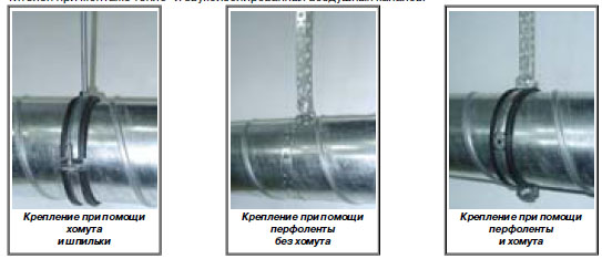 Bande perforée. L'option la plus appropriée pour fixer l'échangeur d'air sous la forme d'un tuyau rond. Pour effectuer ce type de fixation, une boucle est réalisée, puis elle est fixée au boulon aux endroits où les éléments de ventilation sont interconnectés. L'avantage de cette option de fixation est son faible coût, mais cette option a aussi un inconvénient, il n'y a pas assez de rigidité, donc le tuyau peut vibrer ;