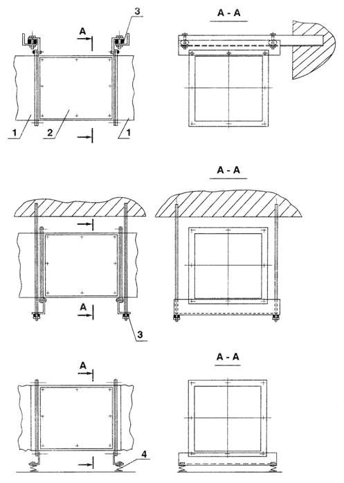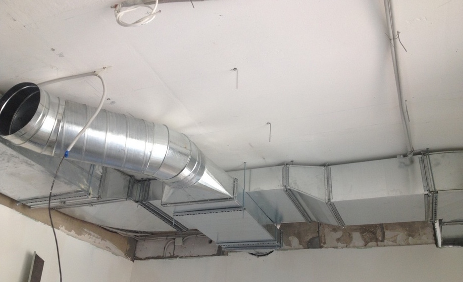 Le conduit d'air est fixé au plafond dans 50% des cas, s'il n'est pas possible de fixer la ventilation au mur. Des cintres, des goujons et des supports sont utilisés pour la suspension.