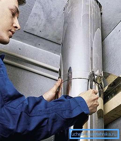 S'il est nécessaire de monter un échangeur d'air rigide, il faudra alors faire appel à des spécialistes tiers. Un montant métallique est utilisé pour le fixer au mur. L'épaisseur du goujon de montage est calculée en fonction de paramètres tels que la longueur du tuyau, le matériau du goujon. Cette méthode d'installation peut être utilisée pour les tuyaux ronds et carrés. Pour soutenir efficacement les pièces, des pinces spéciales en métal sont utilisées.Les joints des unités et des parties de la structure sont renforcés à l'aide de boulons de serrage spéciaux.