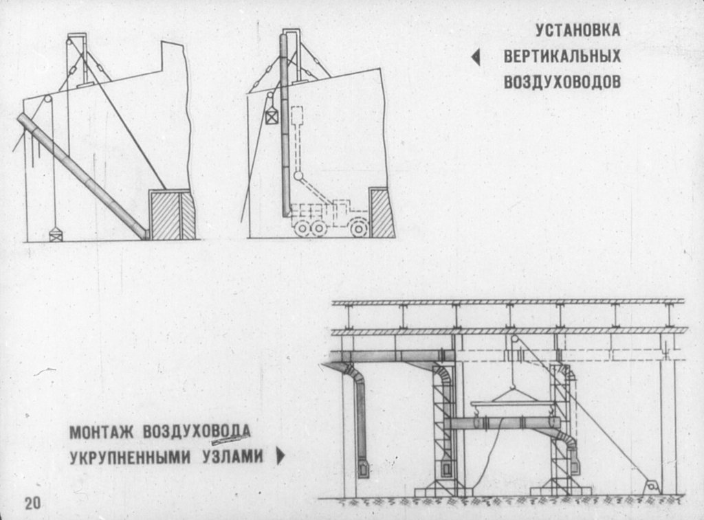 Les normes d'installation sont prescrites dans le document SNiP 3.05.01 - 1985, et la conception tient compte des normes d'emplacement des conduits d'air du SNiP 2.04.05.1991. Les axes centraux de l'autoroute doivent être parallèles au plan des structures environnantes.
