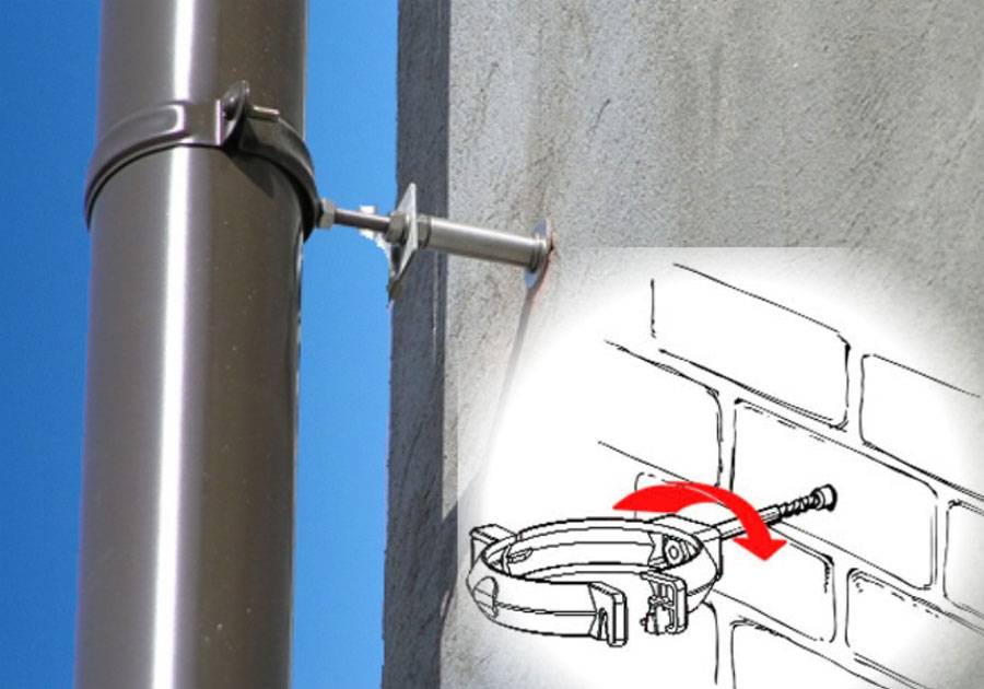 Pour connecter des systèmes de ventilation ronds à une colonne massive en béton armé, il est préférable de choisir des supports constitués de consoles déjà soudées à une dalle de fer et d'une paire de pinces. Ils devront être connectés avec des boulons lorsque l'assemblage du conduit est terminé.