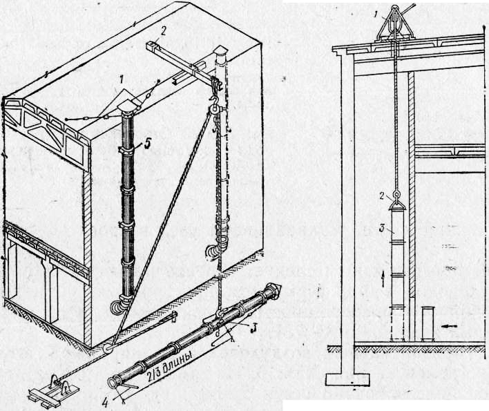 Dans le cas où la colonne elle-même est réalisée sous la forme d'un treillis, le processus sera effectué entre les entretoises ou le long des bords. Lorsque vous choisissez la première option, vous devez d'abord fixer les buses et seulement après cela, procéder au travail principal. Sur le lieu d'installation de la ventilation, elle n'est pas introduite entièrement, mais par fragments. La seconde des options se distingue par la possibilité de collecter de gros blocs, qui doivent ensuite être soulevés avec un treuil et fixés avec des supports.
