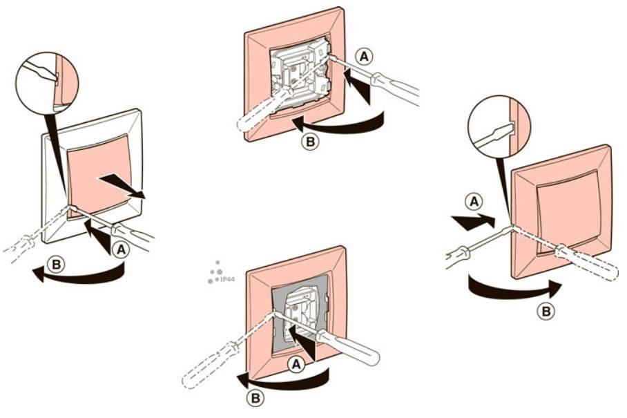 A l'aide d'un tournevis plat, retirez la clé de l'interrupteur, placez-la sur le côté gauche ou droit et déconnectez-la du boîtier.