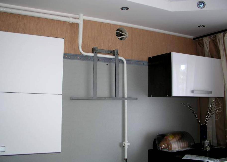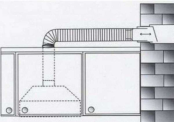 Dans les cas où une hotte aspirante est achetée avec de l'air évacué dans un tuyau de ventilation ou une cheminée, la conception avec ventilateurs est montée au mur de la même manière qu'un modèle avec une méthode de purification de l'air en circulation. Ensuite, il est nécessaire de procéder à l'installation du conduit d'air en tenant compte de la distance minimale entre la hotte et la cuisinière à gaz ou électrique. Pour une ventilation normale, afin d'éviter l'effet de recirculation, c'est-à-dire le retour des masses d'air des conduits de ventilation vers la cheminée, il est conseillé d'inviter des spécialistes.
