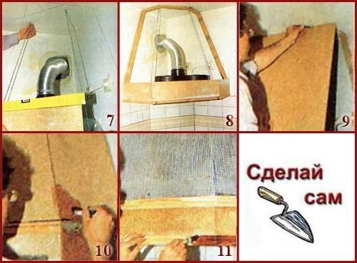 Comme vous pouvez le voir, le processus d'installation est en quelques étapes simples. Cependant, ils seront absolument inutiles si vous choisissez le mauvais modèle, négligez la précision du balisage et ne vous inquiétez pas à l'avance du dispositif du casier ou de la possibilité d'installer un conduit d'air.