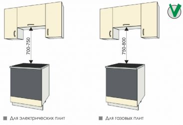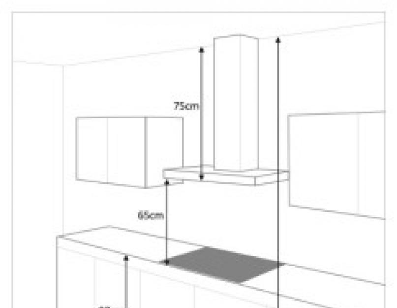La hauteur optimale au-dessus de la cuisinière à gaz est d'environ 80 cm (au-dessus de la cuisinière électrique, 70 cm suffisent).Il faut retirer cette valeur de la plaque et tracer une ligne horizontale avec un crayon. Ce sera la surface inférieure de la hotte. À partir de là, vous pouvez marquer les trous pour accrocher.