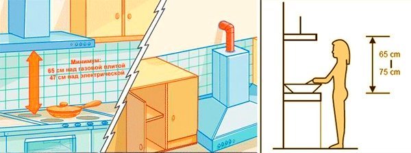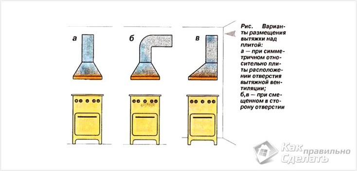 Habituellement, un dispositif de ventilation forcée est placé au-dessus du poêle directement sur le mur. Le plus souvent, deux points d'appui suffisent. En règle générale, le manuel d'installation et d'utilisation est joint à la hotte achetée.