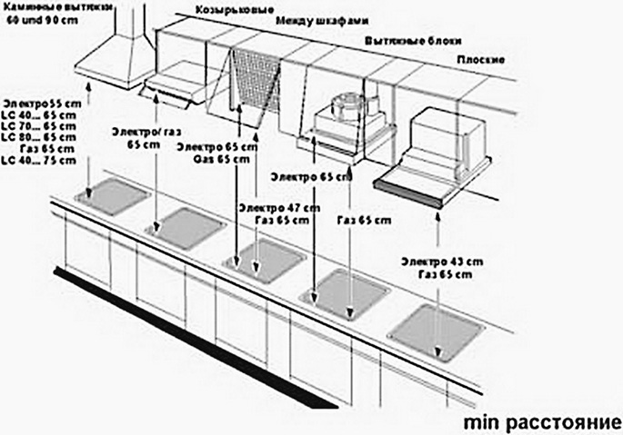 Selon la méthode d'installation, l'équipement de cuisine d'échappement est divisé en autonome et intégré. Le premier est monté séparément, sur un mur ou un plafond, et le second est intégré dans des armoires de cuisine ou d'autres structures suspendues.