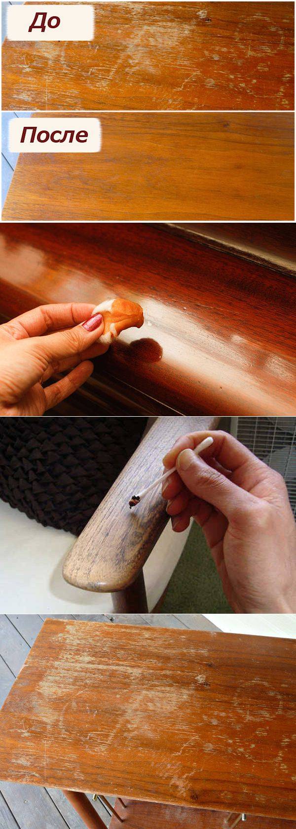 Vous pouvez également vous débarrasser des rayures sur les meubles en bois à l'aide de remèdes populaires éprouvés, ils ne sont pas pires que les spéciaux, et en plus, ils sont presque toujours dans chaque maison.