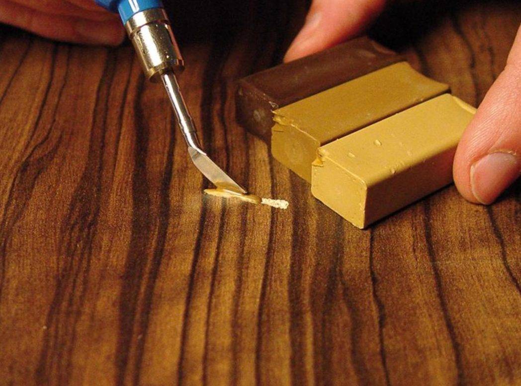 Certaines formulations nécessitent une pré-fusion, qui peut être effectuée à l'aide d'un bain-marie ou d'un sèche-cheveux domestique ordinaire. L'appareil est dirigé vers un crayon dont la cire coulera directement sur le défaut. Après séchage, le meuble est soigneusement poli avec un chiffon sec.