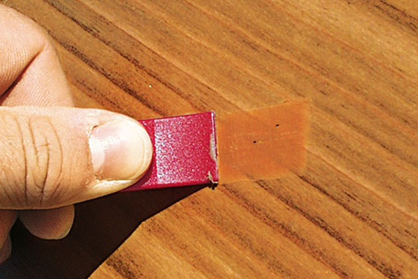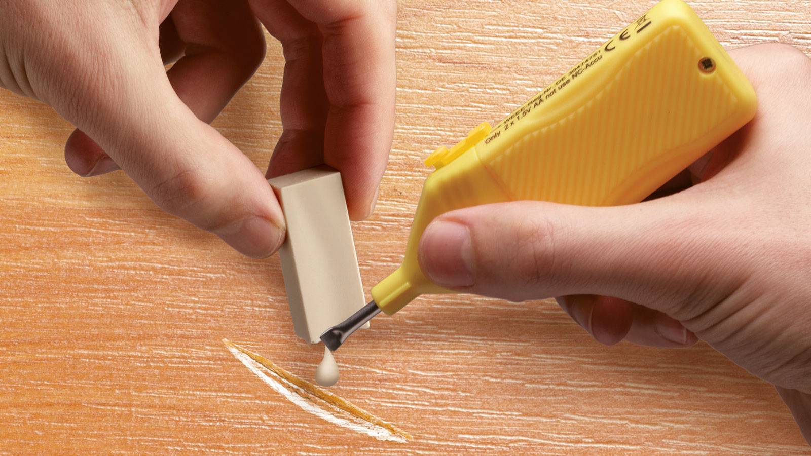 - Dirigez le crayon le long des dommages en appuyant doucement sur la tige. Pendant le traitement, il se remplira et deviendra invisible.