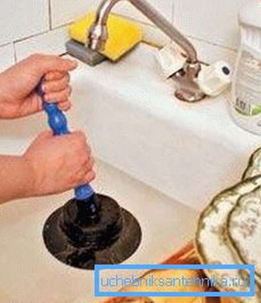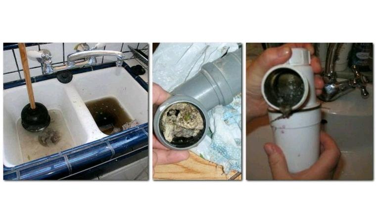 Si la cause du blocage se trouve à proximité immédiate de l'endroit où l'eau s'écoule, il est alors beaucoup plus facile de démonter le siphon et de le rincer abondamment à l'eau chaude courante. Le siphon remplit la fonction d'hydro-barrière, empêchant la pénétration d'odeurs désagréables de l'égout dans l'appartement.Ainsi, l'apparition d'un ambre inesthétique, conjuguée à une évacuation difficile de l'eau, indique que c'est le siphon qui s'est bouché.