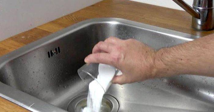 Cette méthode vous permettra de nettoyer le système de vidange des dépôts graisseux. 200 g de poudre sont versés dans le trou, après quoi 200 ml d'acide acétique y sont versés.