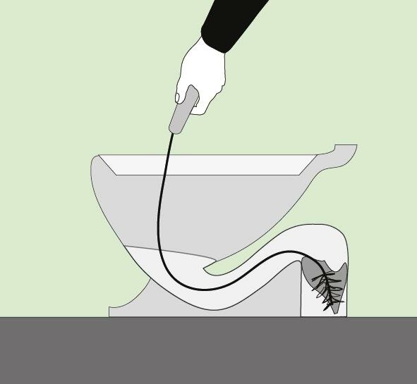 Si le câble est coincé et ne va pas plus loin, il est tiré et l'opération d'insertion est répétée avec défilement. La longueur du câble peut aller de 1 à 3 mètres, et un câble court de 1 à 1,5 m est plus pertinent pour nettoyer les toilettes.