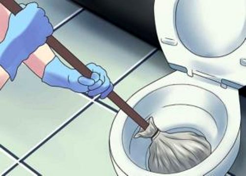 - Ensuite, vous devez mettre votre main dans les toilettes et trouver la cause du bouchon à partir de là.
