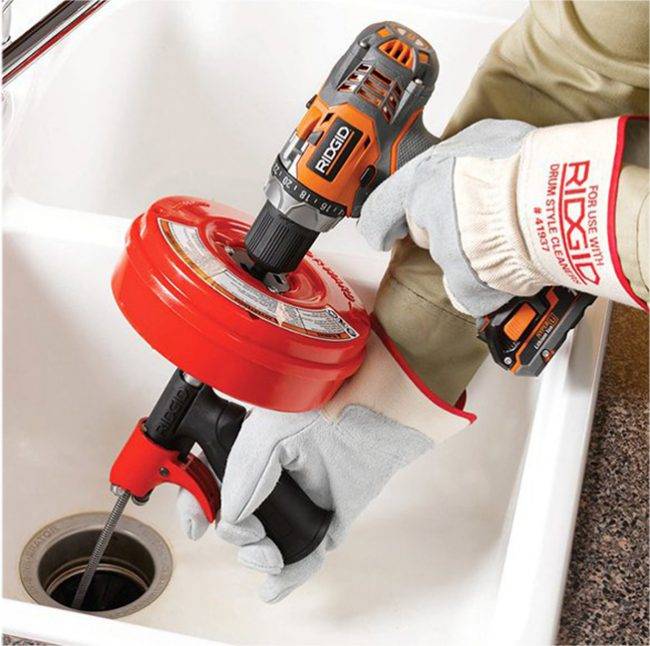 Ensuite, considérez la méthode: comment nettoyer mécaniquement un sabot dans l'évier, qui devrait être utilisé si la soude, le vinaigre, le tiret, la taupe et la mite ne vous aident pas.