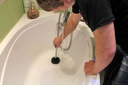 Si le blocage n'a pas été éliminé la première fois, répétez la procédure à nouveau. Veuillez noter que seuls les blocages situés à proximité du drain peuvent être éliminés avec un piston, si le tuyau est bouché derrière le siphon, vous devez choisir une autre méthode.