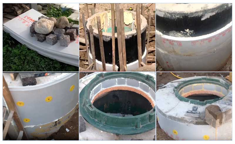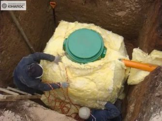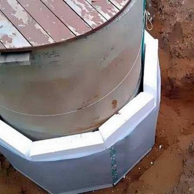 - Des travaux sont en cours pour isoler le caisson. Pour ce faire, une couche de tout matériau non soumis aux effets agressifs du sol, par exemple du polystyrène expansé, est posée autour du fût. Vous pouvez également utiliser de la laine minérale, sur laquelle une couche d'imperméabilisation est appliquée.