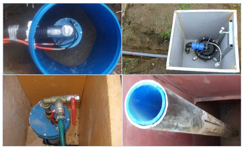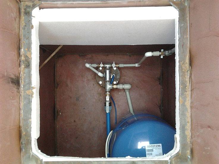- À l'intérieur du réservoir, une connexion est montée entre la tête du puits et le tuyau d'arrivée d'eau.