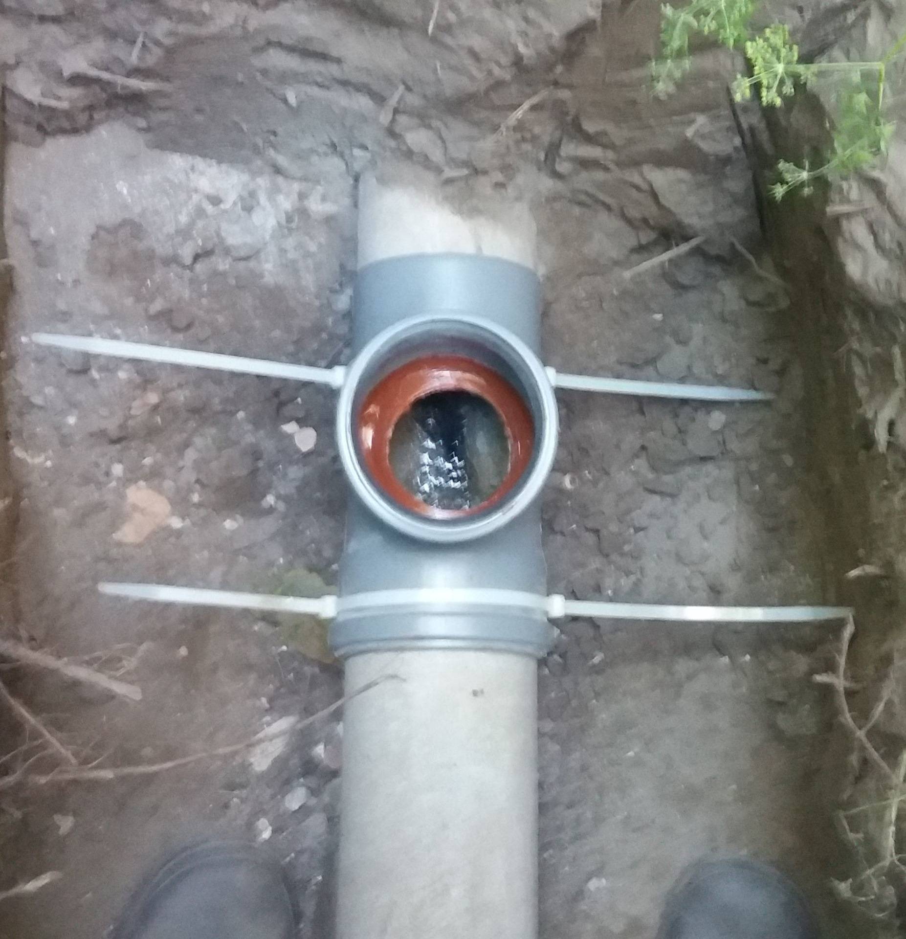 - Tout d'abord, vous devez exposer la section de l'autoroute sur laquelle le raccordement sera effectué. Pour ce faire, vous devez creuser une fosse d'environ un mètre et demi sur un mètre et demi.