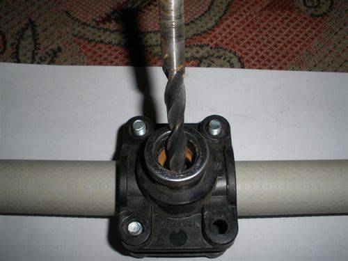 4. Dans la vanne à l'état ouvert, vous devez insérer une fraise du diamètre requis et percer un trou.