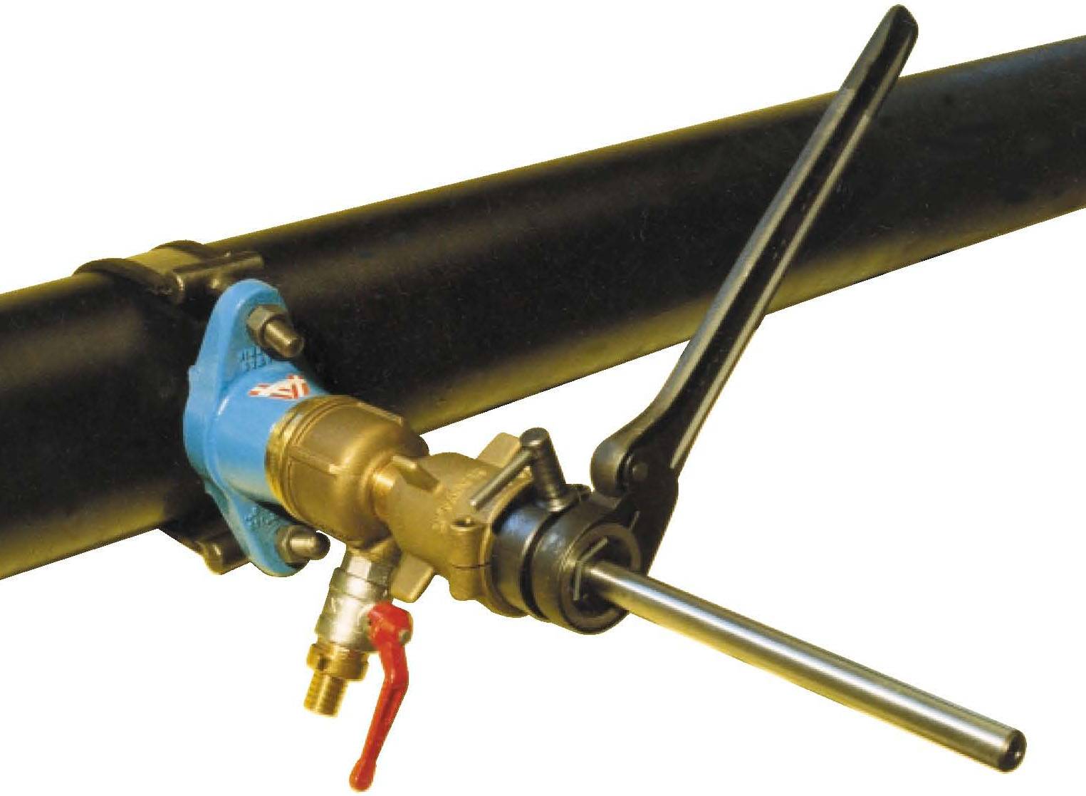 Percer un trou dans un tuyau à travers un robinet à tournant sphérique.