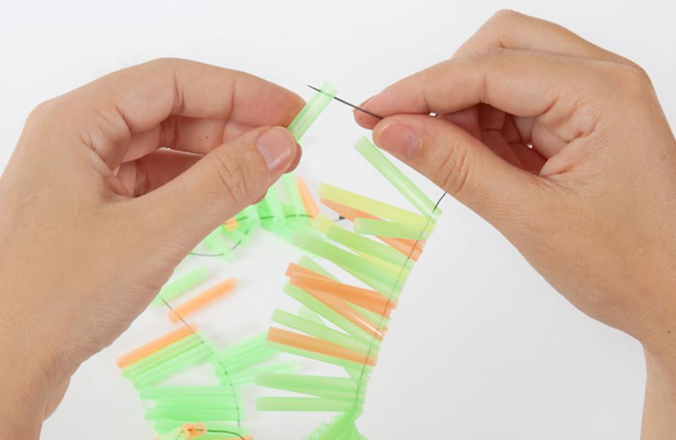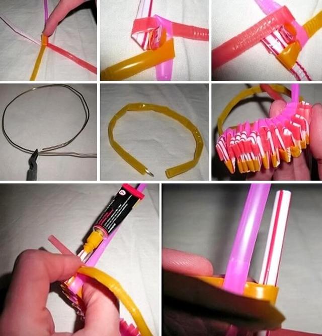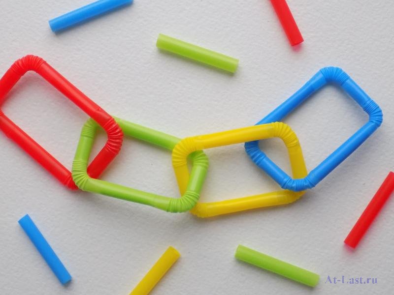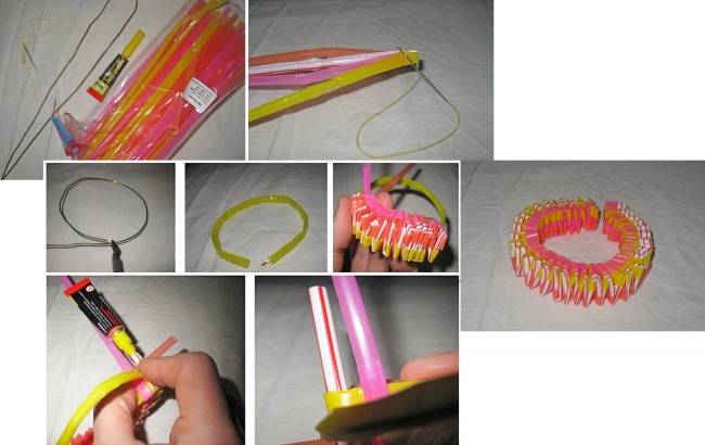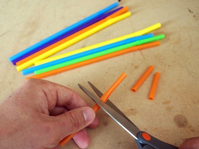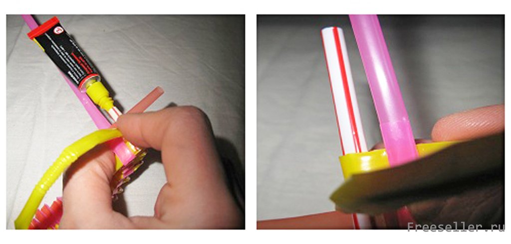 3. Vous pouvez couper les pailles en anneaux et placer les éléments perpendiculairement à la base. Si vous utilisez un matériau multicolore, vous pouvez créer l'effet d'un motif abstrait.